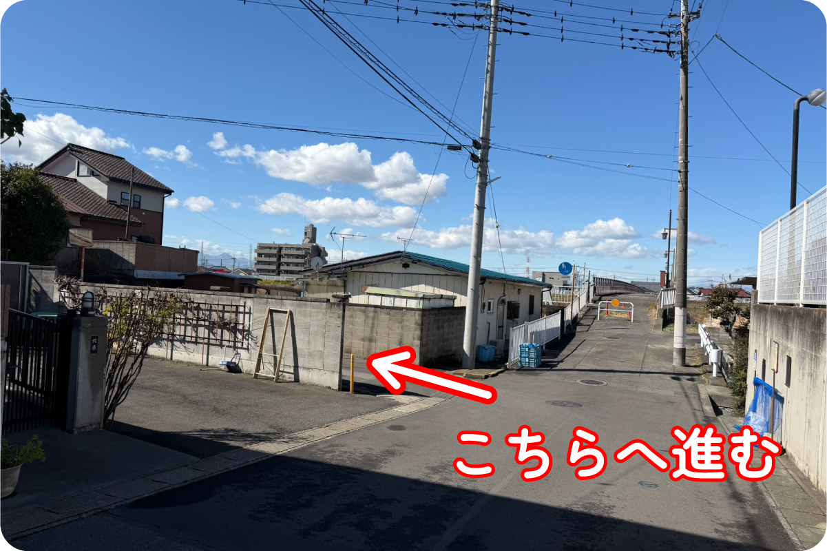 右折してすぐ(約5メートルほど進んだところ)に、左側へ入る細い道※がありますので、そちらを左折してください。